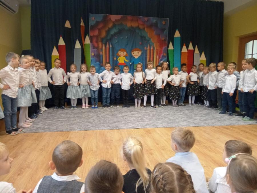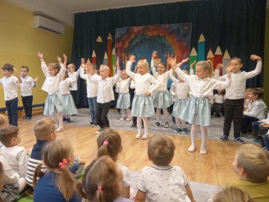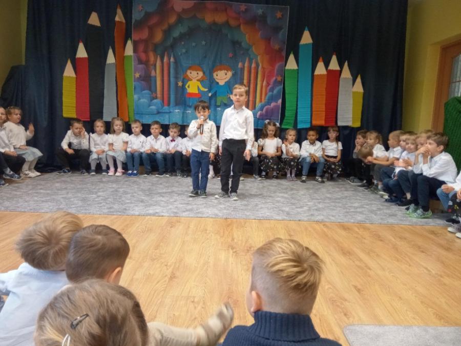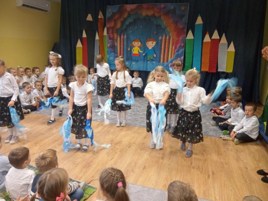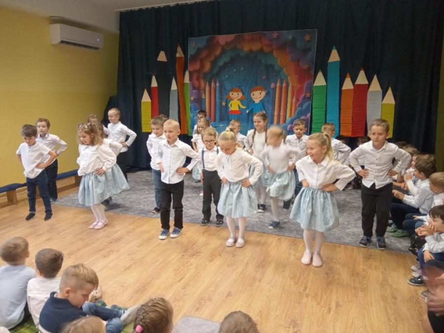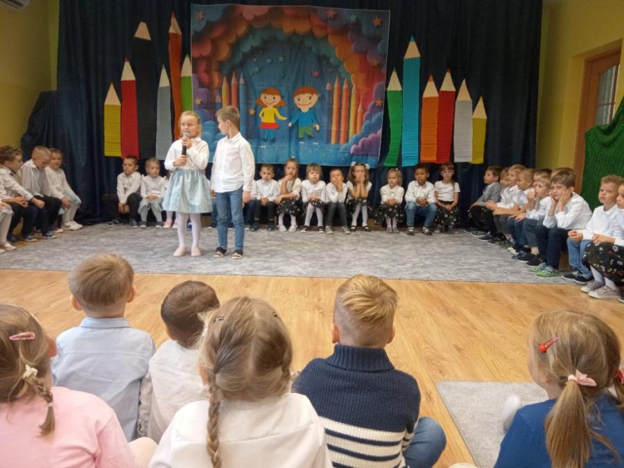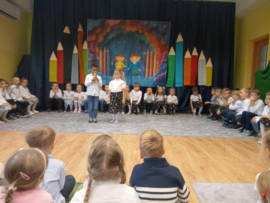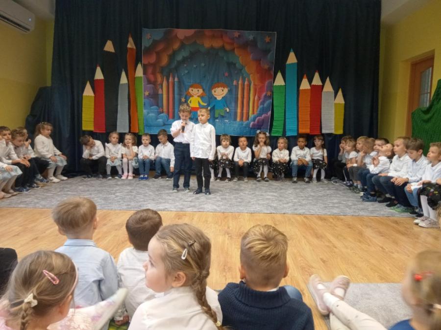 14.10. 2025 naszym przedszkolu z radością świętowaliśmy Dzień Edukacji Narodowej! 6-latki z grupy konwaliowej i słonecznej przygotowały występ artystyczny wzbogacony wierszykami o każdym pracowniku, tańcami i piosenką, która wzruszyła wszystkich zebranych gości. Takie uroczystości to doskonała okazja, aby podkreślić, że Dzień Edukacji Narodowej to dzień wszystkich pracowników przedszkola, a także samych przedszkolaków.