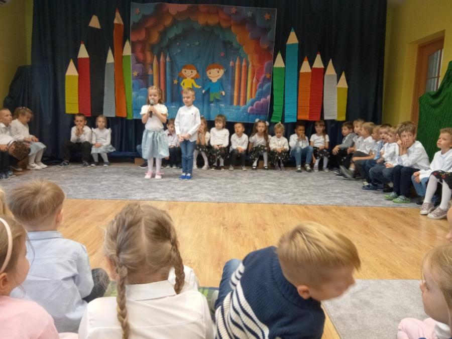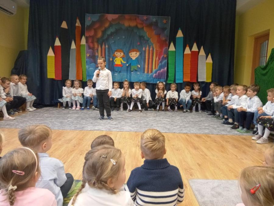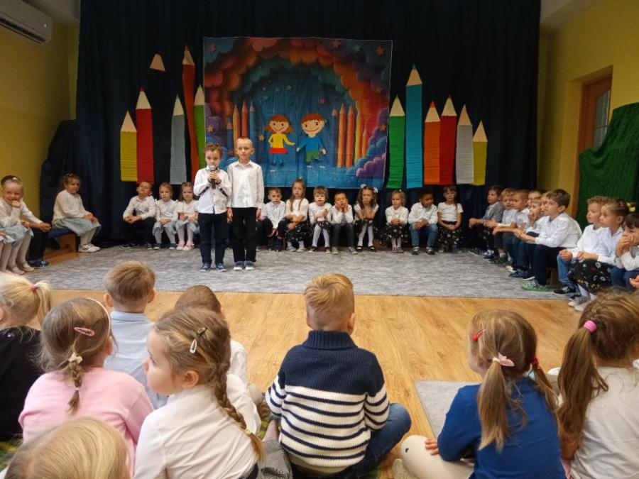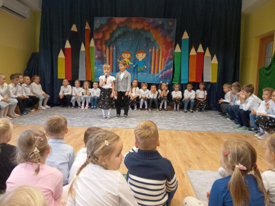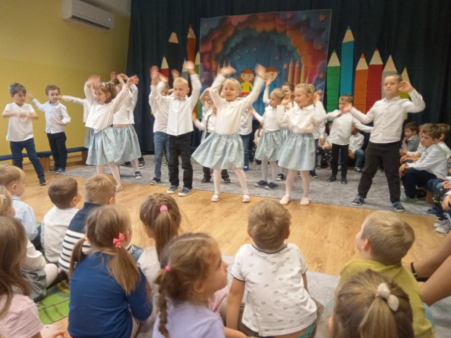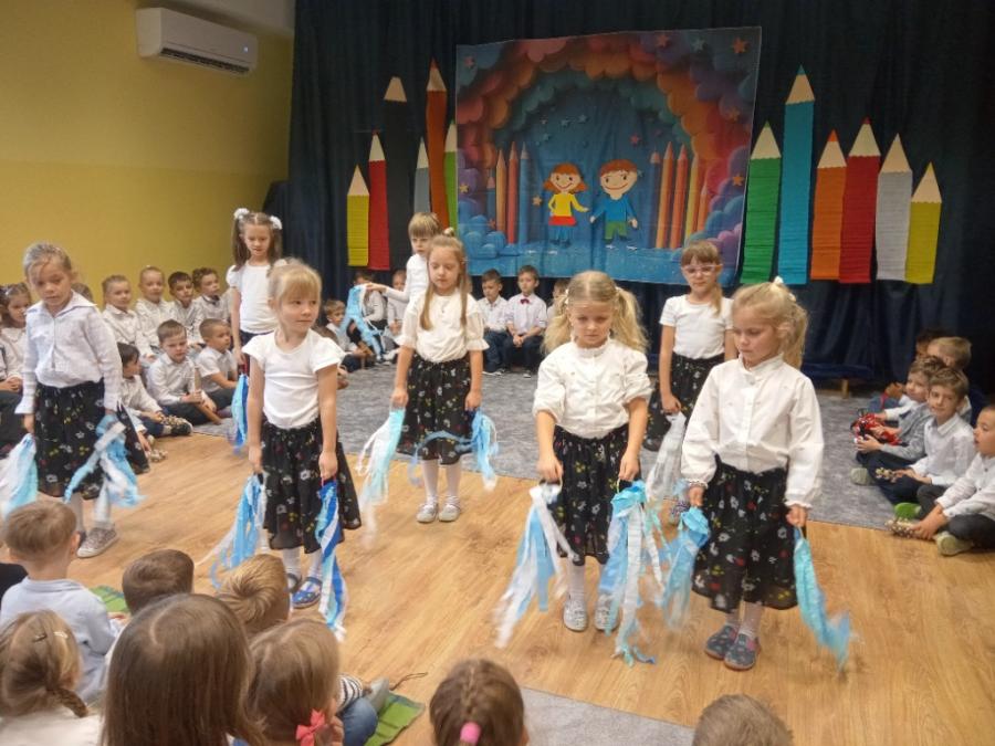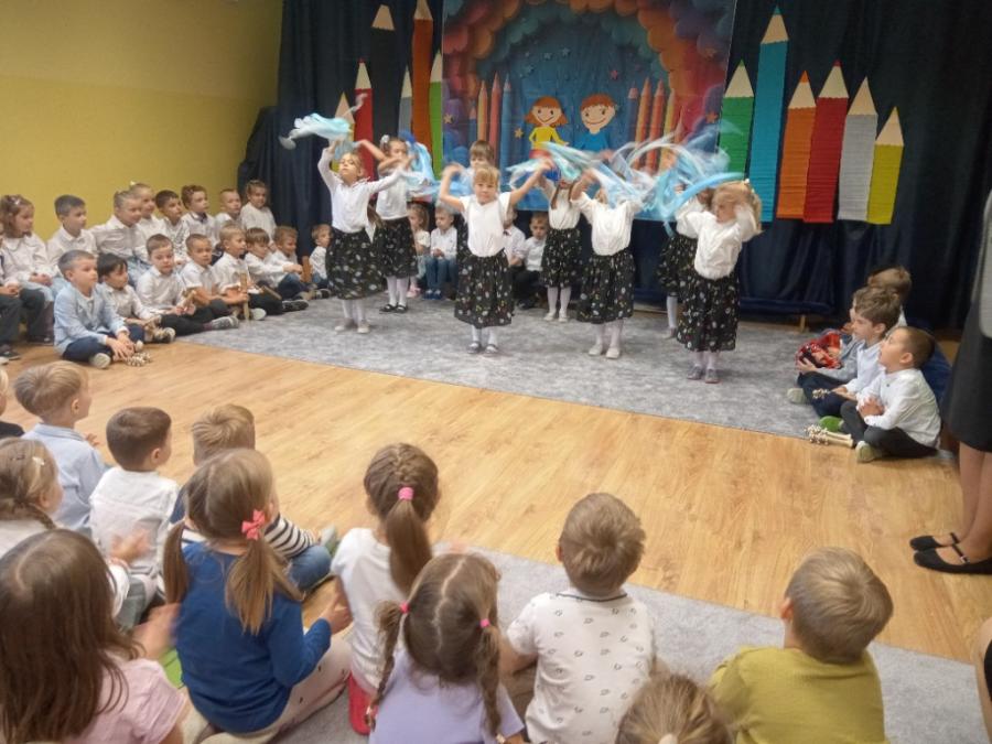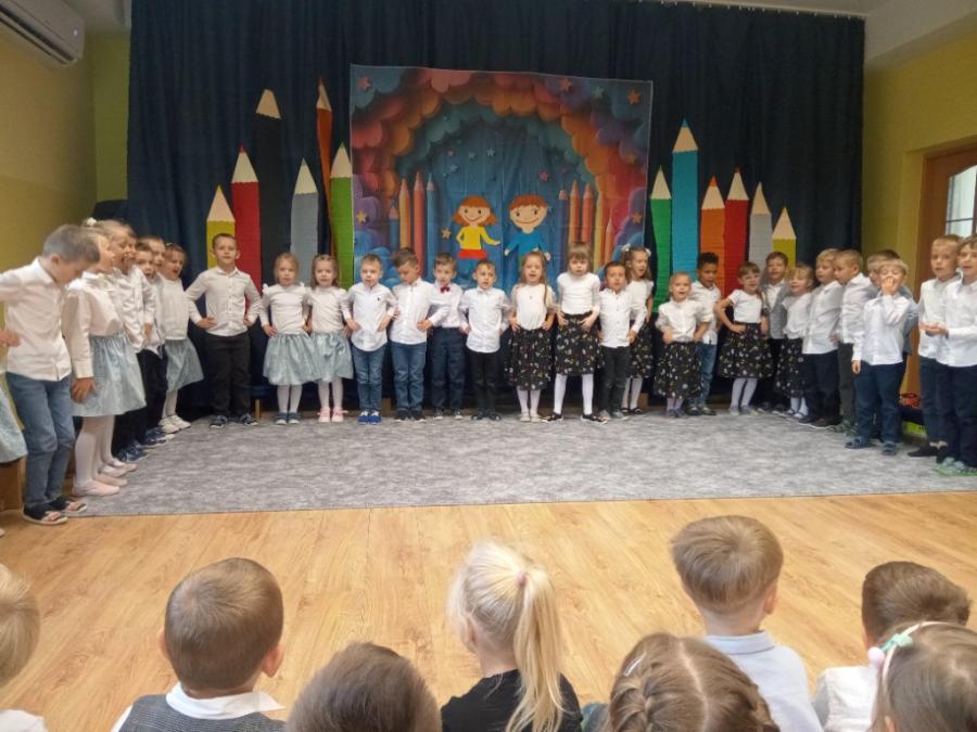 14.10. 2025 naszym przedszkolu z radością świętowaliśmy Dzień Edukacji Narodowej! 6-latki z grupy konwaliowej i słonecznej przygotowały występ artystyczny wzbogacony wierszykami o każdym pracowniku, tańcami i piosenką, która wzruszyła wszystkich zebranych gości. Takie uroczystości to doskonała okazja, aby podkreślić, że Dzień Edukacji Narodowej to dzień wszystkich pracowników przedszkola, a także samych przedszkolaków.