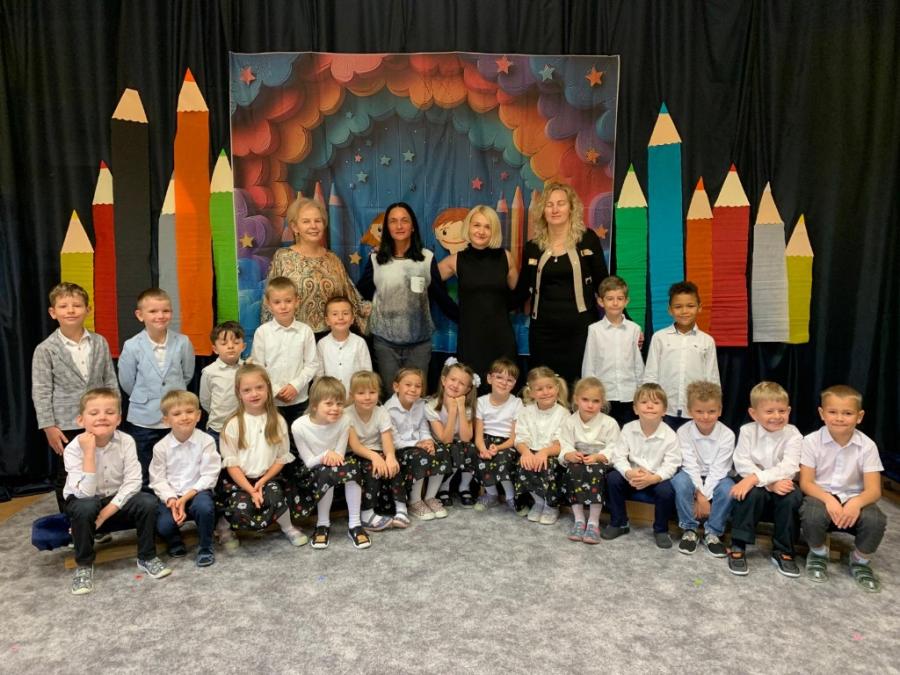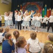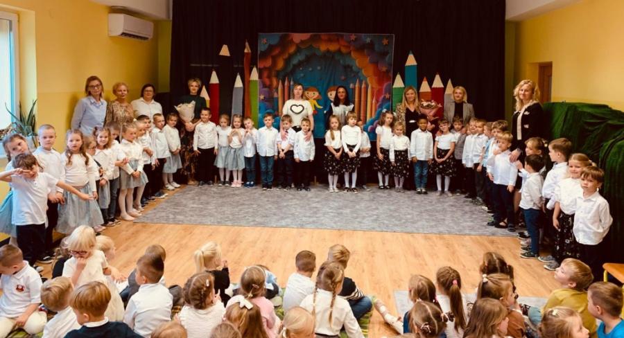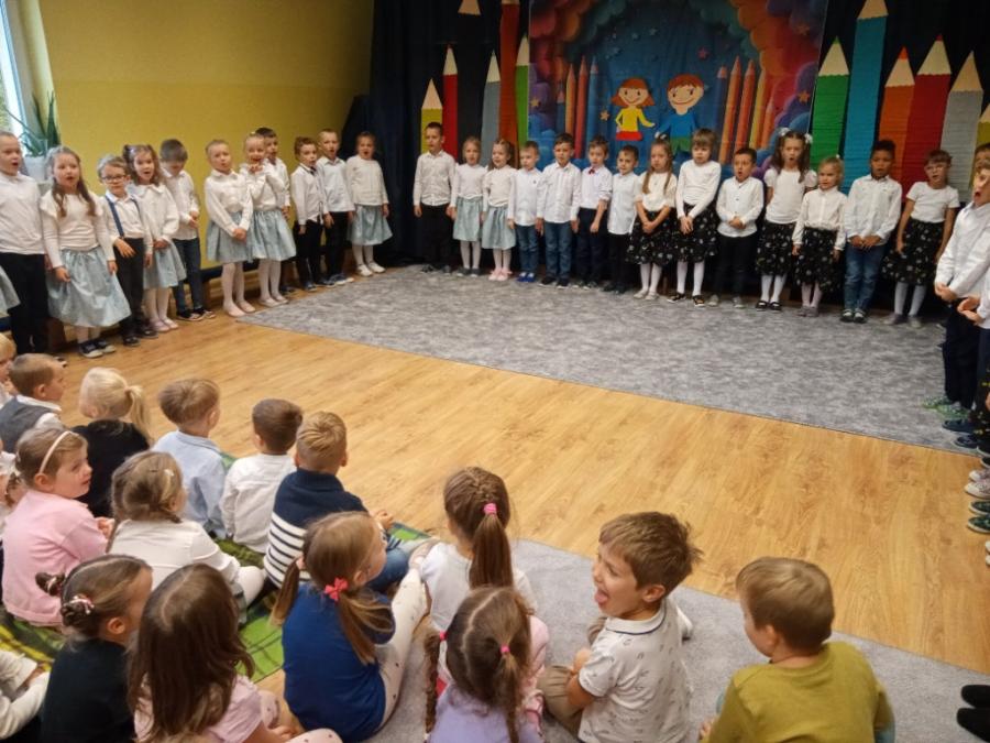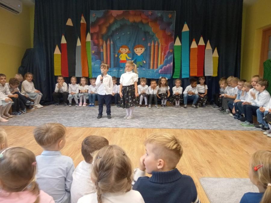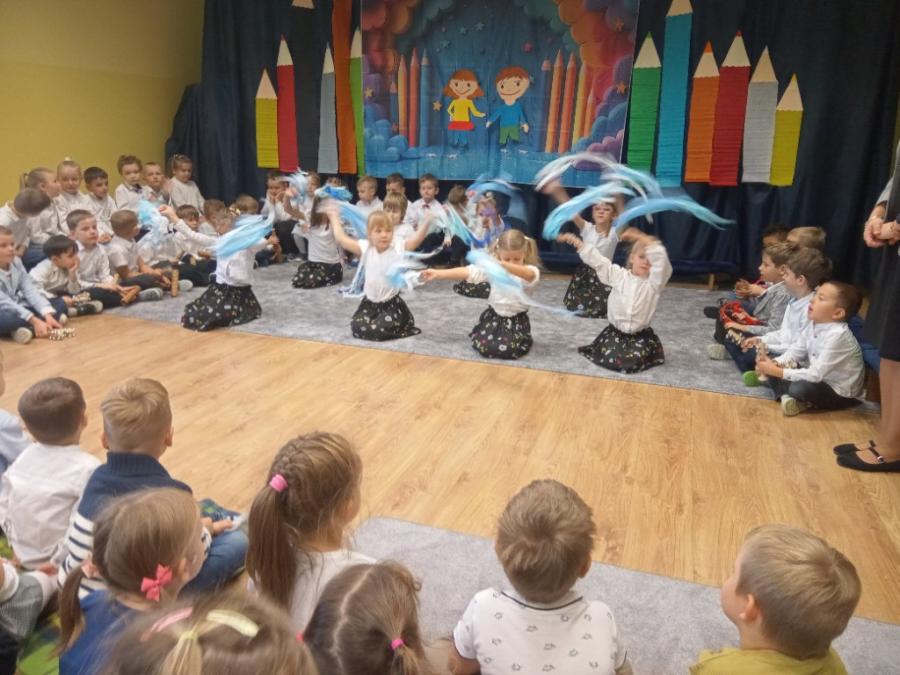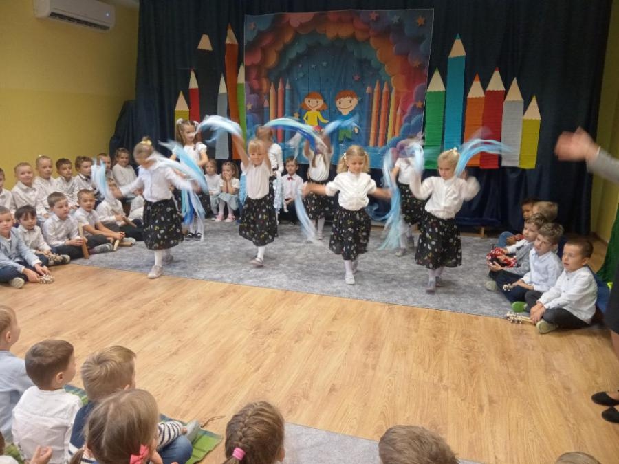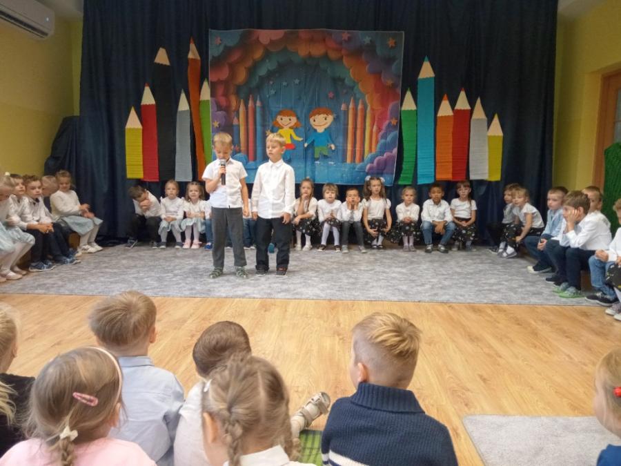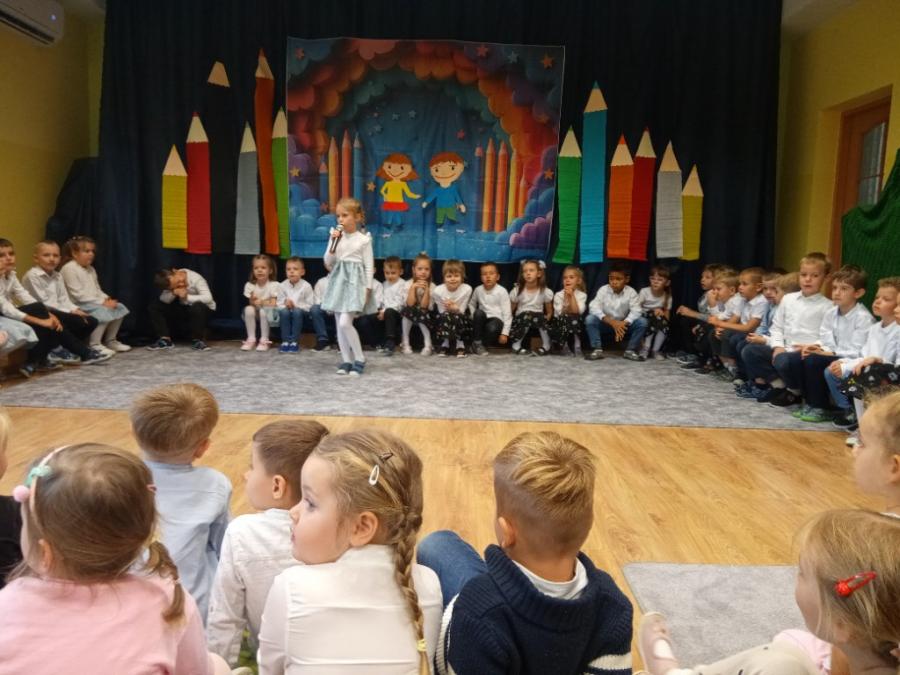 14.10. 2025 naszym przedszkolu z radością świętowaliśmy Dzień Edukacji Narodowej! 6-latki z grupy konwaliowej i słonecznej przygotowały występ artystyczny wzbogacony wierszykami o każdym pracowniku, tańcami i piosenką, która wzruszyła wszystkich zebranych gości. Takie uroczystości to doskonała okazja, aby podkreślić, że Dzień Edukacji Narodowej to dzień wszystkich pracowników przedszkola, a także samych przedszkolaków.