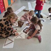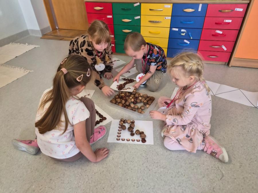 Zabawy matematyczne w przedszkolu rozwijają umiejetności takie jak liczenie, dodawanie, odejmowanie, rozpoznawanie figur, rytmów, a także logiczne myślenie. Przykłady aktywności obejmują: układanie rytmicznych sekwencji poprzez manipulowaie naturalnymi materiałami , zabawy w sklep, tworzenie konstrukcji z darów natury. Kluczowe jest, aby nauka odbywała się poprzez zabawę, co zwiększa zaangażowanie dzieci i pozytywnie wpływa na ich stosunek do matematyki.Takie działania wykorzystane zostały w organizacji Jesiennych zabawa matematycznych, zorganizowanych w ramach współpracy i integracji grupy Jawrowej (5-latki) oraz Orzechowej (4-latki) oraz Dobrych Praktyk, z kórych skorzystały grupy sześciolatków.