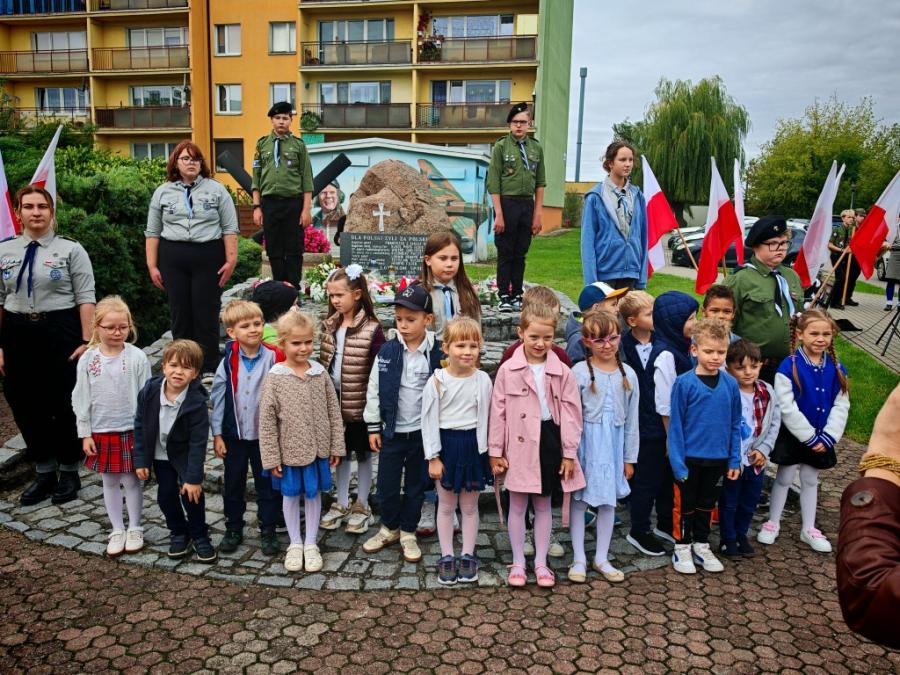 W dniu 15 września 2025 r. dzieci 6- letnie z grupy Konwaliowej wraz z nauczycielkami uczestniczyły w uroczystości przy Pomniku Lotników w Nowych Skalmierzycach upamiętniającej 82- rocznicę tragicznego wypadku samolotu Halifax i śmierć polskich lotników. Wszyscy zgromadzeni na uroczystości oraz nasze Przedszkolaki uczciły bohaterstwo lotników hymnem narodowym, a także złożyły wiązankę kwiatów będącej wyrazem pamięci oraz wdzięczności wobec bohaterów II wojny światowej.